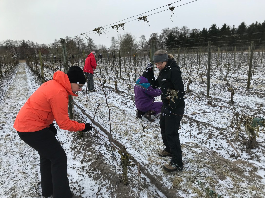 Av de 245 plantorna klippte vi ner cirka 50. Några få av dem därför att snittet var brunt, men flesta för att stammen var för smal. Resten var vid liv och tjocka nog att klippas under enkeltråden. Vi var nöjda med övervintringen.