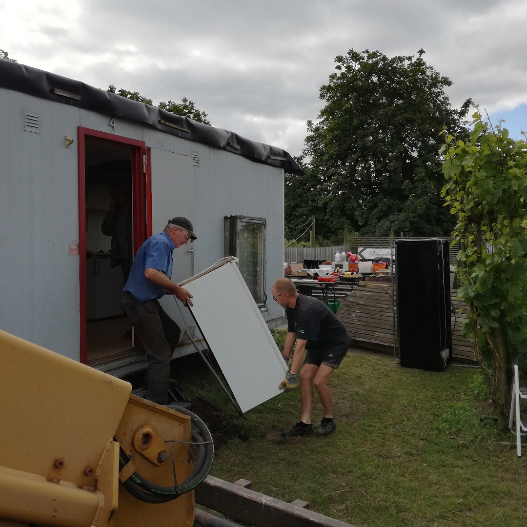 Den gamla arbetsboden i vingården tömdes sedan på allt sitt inkråm (det var en hel del!) innan den kunde dras bort från sin plats innanför grinden.
