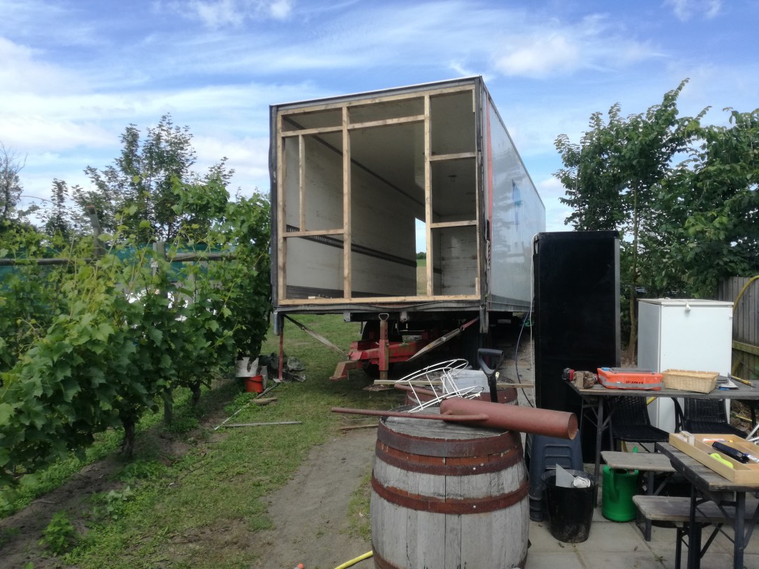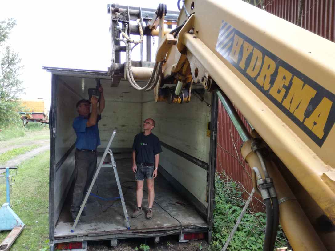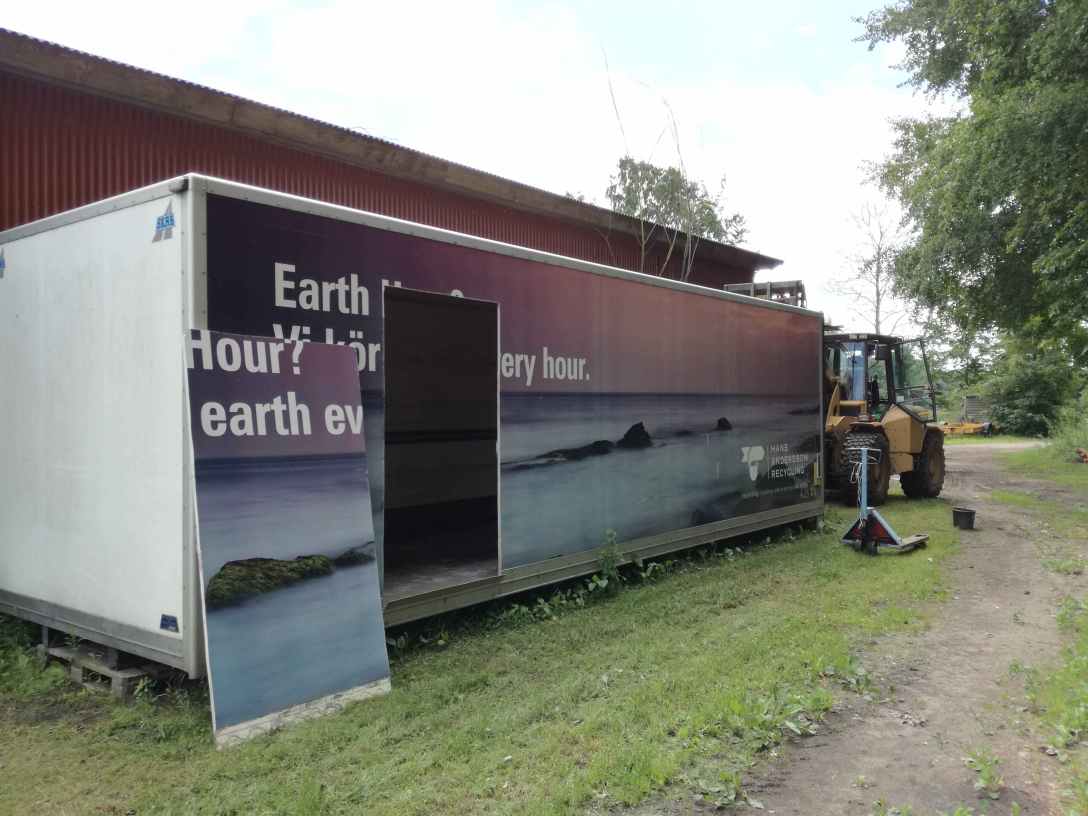 Vi hade redan hösten 2016 fått tag i ett lastbilsskåp som var nästan dubbelt så stort som den gamla arbetsboden. Efter en lång vinter med olika idéer och planering tog vi fatt på projekt nummer två i början av juli.